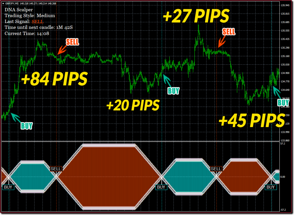 The brand new “DNA Scalper” indicator by Karl Dittmann is a very powerful MT4 scalping indicator (Not EA/Robot) that works on ALL pairs and M1, M5, M15 and M30.